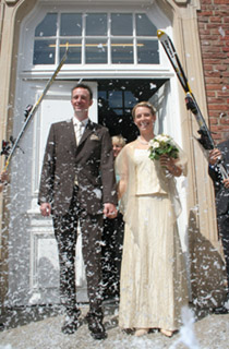 Seitdem bin ich nun nicht mehr Susanne Geimer, die ist im Standesamt geblieben, sondern Susanne Wienzek! Mein Mann heißt Jens und wir haben eine Tolle Hochzeit gefeiert! Alles war seeehr schön, sogar das Wetter hat mitgespielt! Die standesamtliche Trauung fand in Münster statt, die anschließende Feier in Wolbeck. Ich habe ein Kleid geragen, dass meine Mutter selber genäht hat, was mich sehr stolz macht. Es passte natürlich wie angegossen! Der Tag war wahnsinnig schön, was mit Sicherheit auch an unseren Gästen lag! Danke, dass ihr alle dieses Fest mitgestaltet habt! Es war unvergesslich!